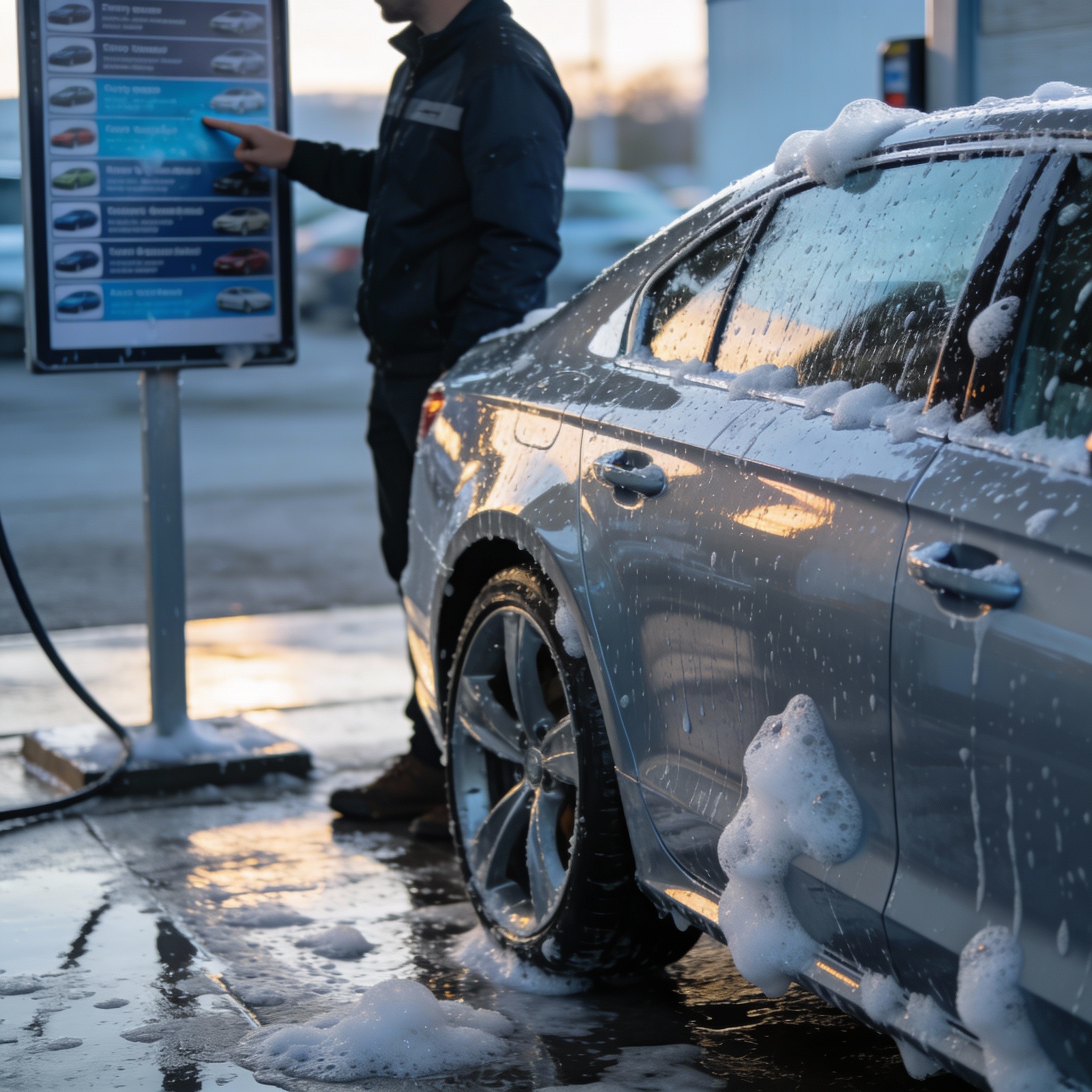 Pesu alkaa automaattisesti. Istut autossa tai odota sisällä. Kaikki on turvallista ja helppoa.